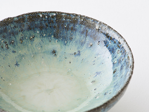 九谷焼といえば、濃厚な色絵の具で器全体を塗り埋めた「青手」や